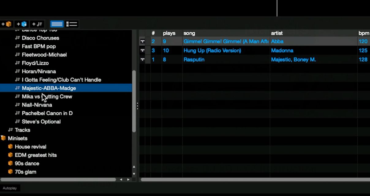 However, great DJs – and that includes the best mobile and wedding DJs, quick mixing every possible type of music – take it further. They use “minisets”. These are small clusters of songs, maybe 3, 5, or 10, that you know work well together, and you are always likely to play together. Not necessarily all of them, not necessarily in the same order – but once you hit a “miniset”, you’re likely going to stay there for a few songs.