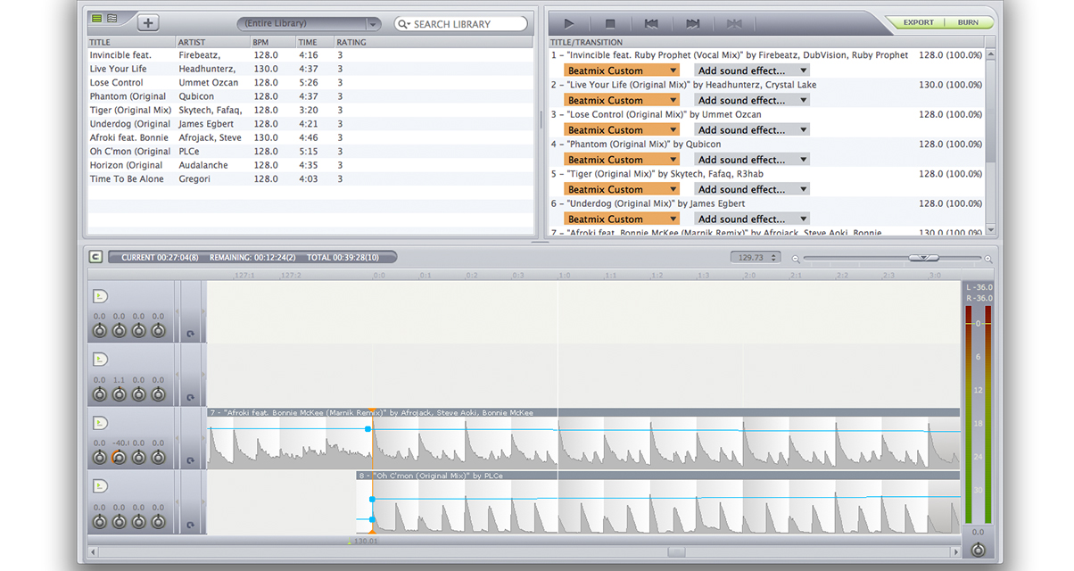 When you’re happy with a transition, you can lock it, and hit a “next transition” button to move on through your mix. This way you can create a DJ mix in far less time than it would take to actually play the records through – a boon for people who need to do this professionally such as radio DJs, or gym instructors wanting to put together mixes for their classes, as another use case.