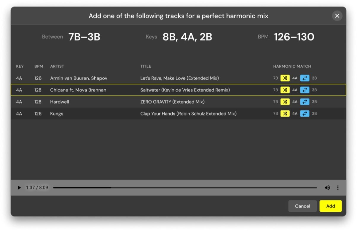 This app leans heavily on Mixed In Key technology and philosophy (indeed, it has a partnership with that app), and also respects our fuzzy keymixing approach to keymixing, which we welcome of course.