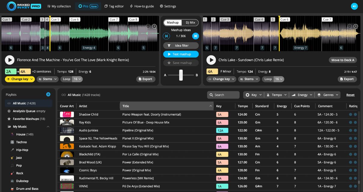 - Mixed In Key’s auto-cue points keep everything in sync